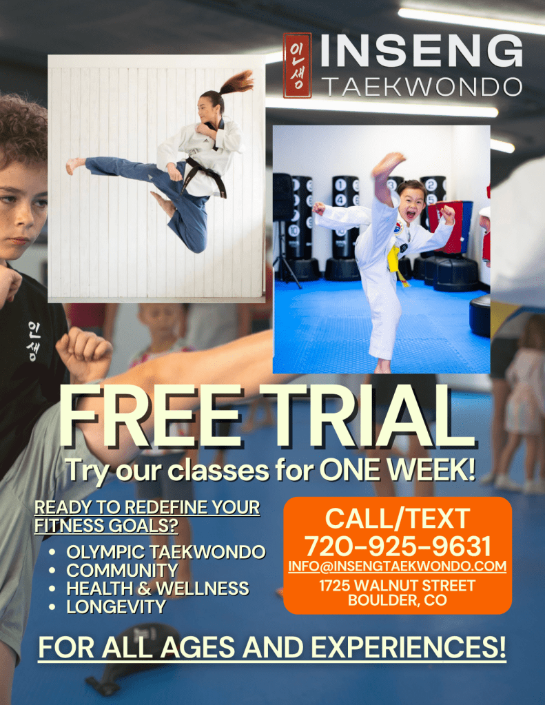 1725 Walnut StreetBoulder, CO 80302720-925-9631info@insengtaekwondo.comSocials: @insengtaekwondo