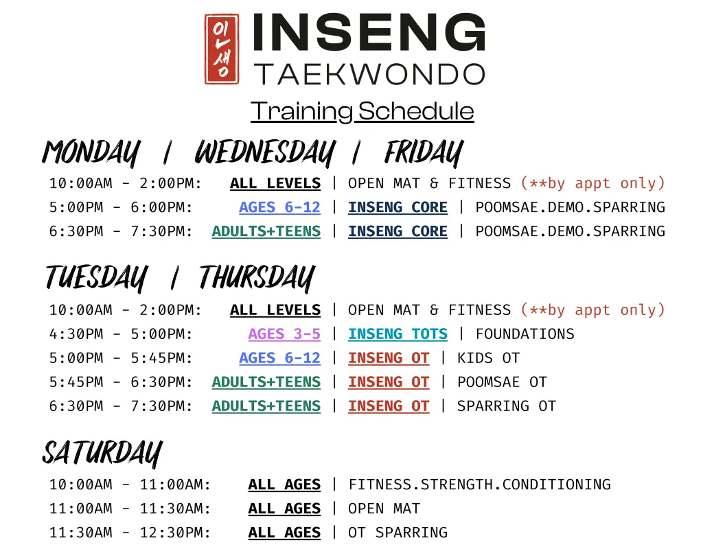 InSeng Taekwondo was founded with the shared value that we grow through all of life’s experiences – easy and difficult, successful and flawed, good times and bad. Progress lives in contrast, and balance comes from embracing it all!